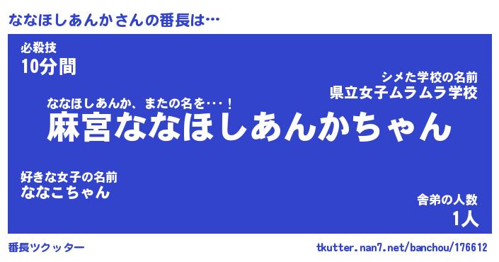 | ヒーロー風カッコイイあだ名 | 『スーパーナナホシアンカ』 |
