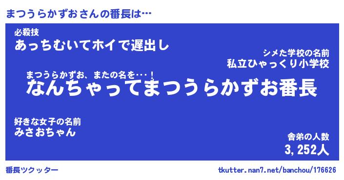 | 伝説のあだ名 | 『伝説のスナイパーまつうらかずお』 |