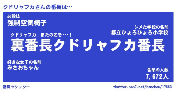 | ファンタジー風あだ名 | 『クドフェル』『ファントムクドス』 |