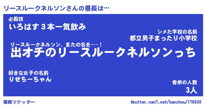 | 男性向けラノベタイトル風あだ名 | 『リースルークネルソンの憂鬱』 |