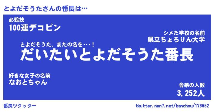 | ヘコむあだ名 | 『とよにー』『つくし』『とよっ子』 |