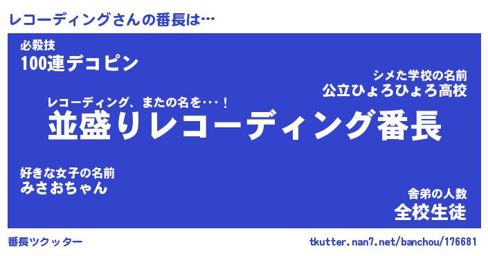 | ピコ太郎風あだ名 | 『レコ次郎』『ピレ十郎』『レコ八郎』 |