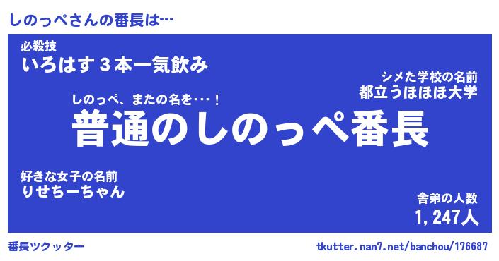 | 意味不明あだ名 | 『ペロリンしのっぺ』『永久保存しのっぺ』 |