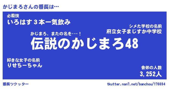 | 意味不明あだ名 | 『ペロリンかじまろ』『永久保存かじまろ』 |