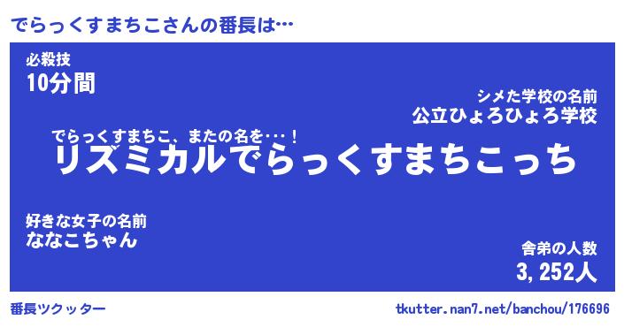 | 伝説のあだ名 | 『伝説のスナイパーでらっくすまちこ』 |