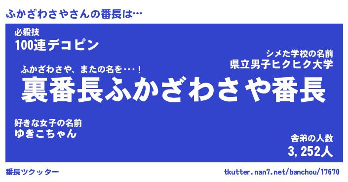 | ポケモン風あだ名 | 『フカチュウ』『フカザダネ』 |
