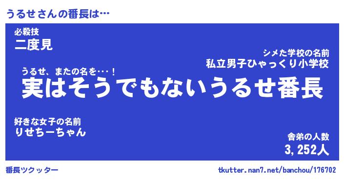 | ヘコむあだ名 | 『うるもー』『つくし』『うるお』 |