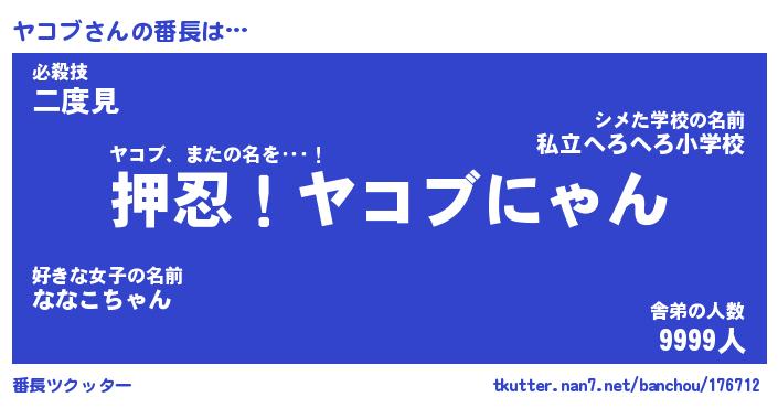 | ピコ太郎風あだ名 | 『ヤコ十郎』『ピヤ三郎』『ヤコ次郎』 |