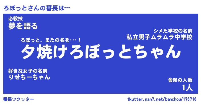 | ヘコむあだ名 | 『ろぼにゅー』『なまこ酢』『ろぼお』 |