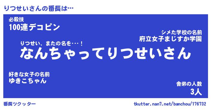 | ヒーロー風カッコイイあだ名 | 『スーパーリツセイ』『黄金騎士リツ』 |