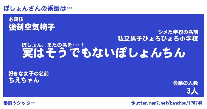 | 欧米人風あだ名 | 『マイケルぽしょん』『ウサインぽしょん』 |