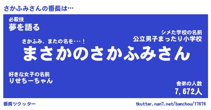 | 意味不明あだ名 | 『ペロリンさかふみ』『永久保存さかふみ』 |