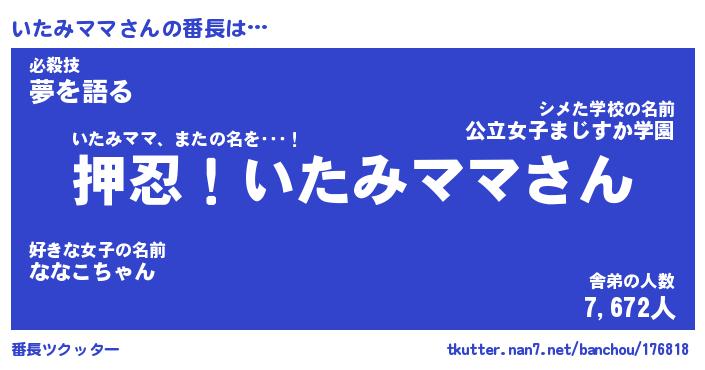 | 肩書あだ名 | 『いたみママ社長令嬢』『いたみママ班長』 |