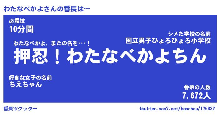 | ポケモン風あだ名 | 『ワタチュウ』『ワタナダネ』 |