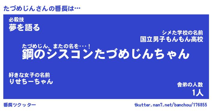 | ファンタジー風あだ名 | 『タヅフェル』『エターナルタヅメジンー』 |
