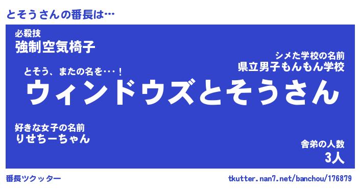 | 意味不明あだ名 | 『ペロリンとそう』『とそうフォーエバー』 |