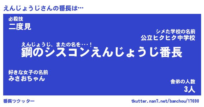 | 伝説のあだ名 | 『封印されしスナイパーえんじょうじ』 |