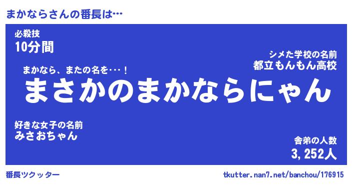 | 意味不明あだ名 | 『ペロリンまかなら』『永久保存まかなら』 |