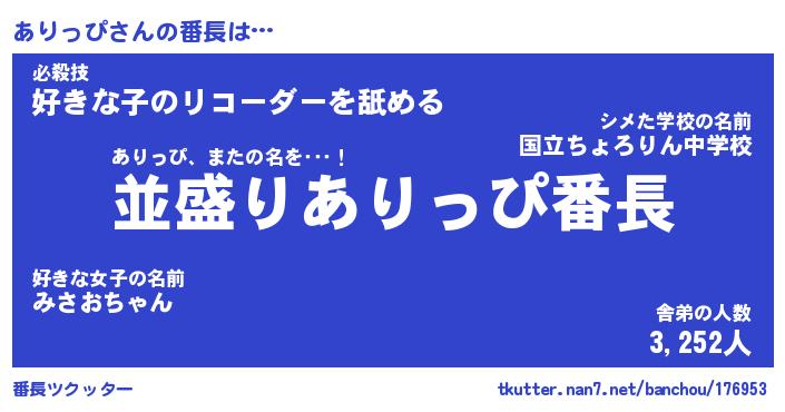 | 意味不明あだ名 | 『ペロリンありっぴ』『永久保存ありっぴ』 |
