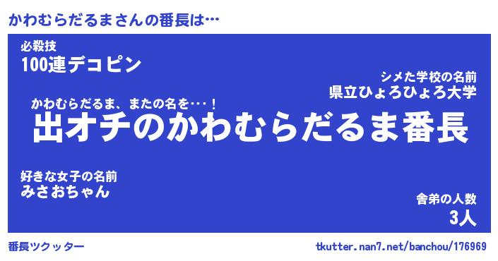 | ヒーロー風カッコイイあだ名 | 『スーパーカワムラダルマ』 |