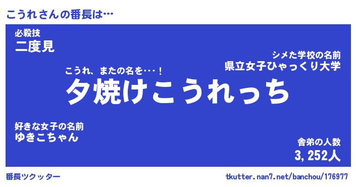 | ヒーロー風カッコイイあだ名 | 『スーパーコウレ』『ウルトラこうれマン』 |