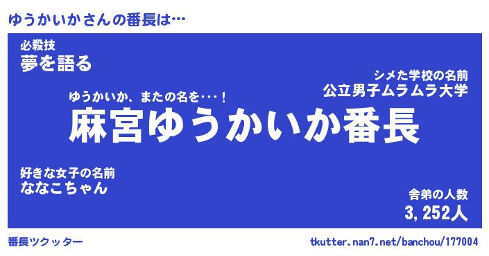 | ピコ太郎風あだ名 | 『ユコ史郎』『ピユ太郎』『ユウ次郎』 |