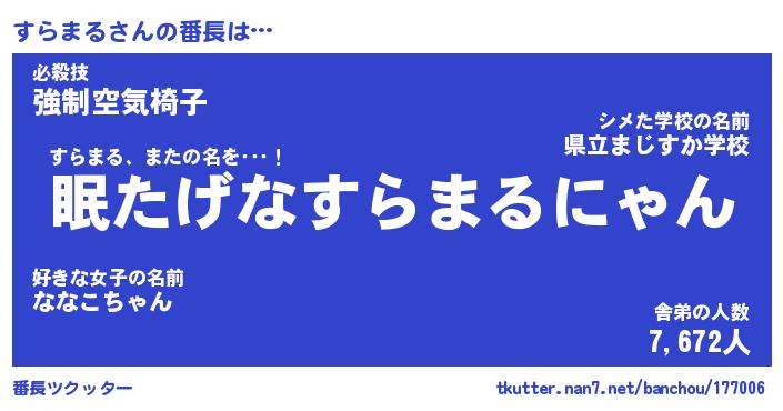 | 欧米人風あだ名 | 『マイケルすらまる』『ウサインすらまる』 |