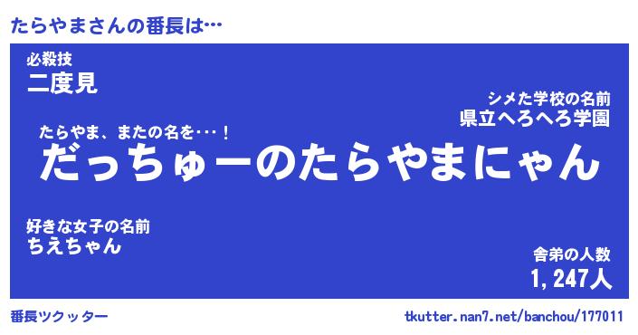 | 伝説のあだ名 | 『伝説のスナイパーたらやま』 |
