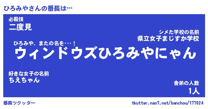 | ヒーロー風カッコイイあだ名 | 『スーパーヒロミヤ』『天弓騎士ヒロ』 |