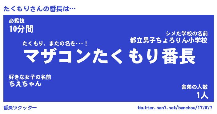 | ヒーロー風カッコイイあだ名 | 『スーパータクモリ』『黄金騎士タク』 |