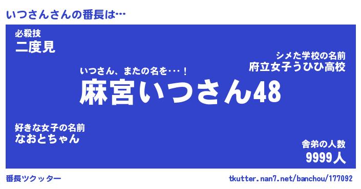 | 意味不明あだ名 | 『ペロリンいつさん』『永久保存いつさん』 |