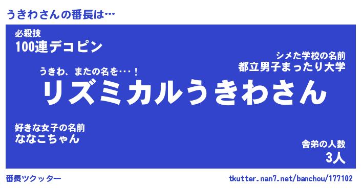 | ファンタジー風あだ名 | 『ウキフェル』『エターナルウキワー』 |