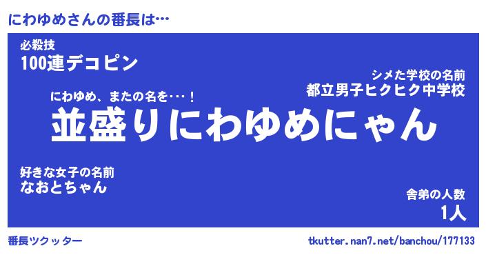 | 欧米人風あだ名 | 『マイケルにわゆめ』『ウサインにわゆめ』 |