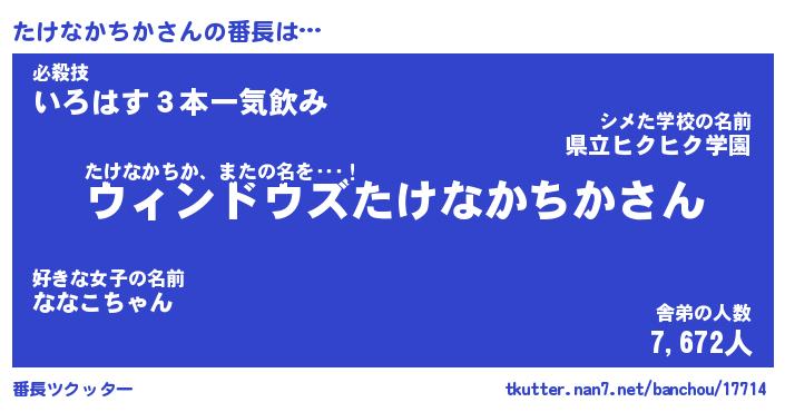 | ポケモン風あだ名 | 『タケチュウ』『タケナダネ』 |
