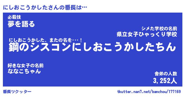 | 伝説のあだ名 | 『封印されしスナイパーにしおこうかした』 |