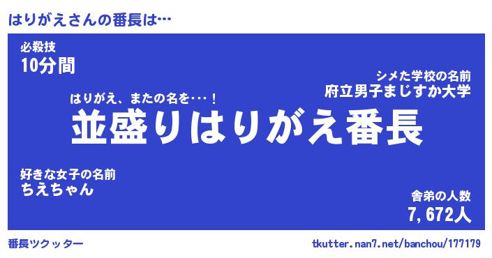| ピコ太郎風あだ名 | 『ハコ八郎』『ピハ三郎』『ハリ四郎』 |