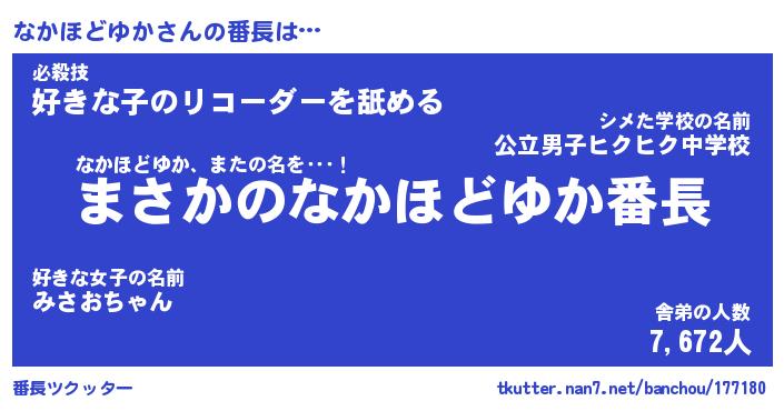 | ヒーロー風カッコイイあだ名 | 『スーパーナカホドユカ』『炎刃騎士ナカ』 |