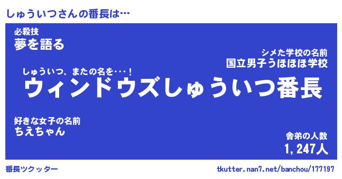 | 肩書あだ名 | 『しゅういつCEO』『しゅういつ総理大臣』 |