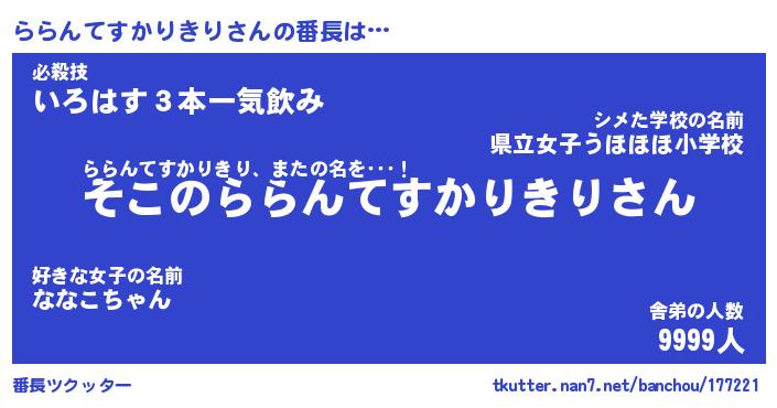 | 伝説のあだ名 | 『不死鳥のスナイパーららんてすかりきり』 |