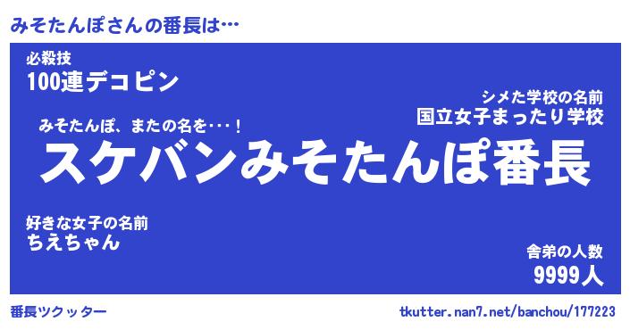 | ヒーロー風カッコイイあだ名 | 『スーパーミソタンポ』『天弓騎士ミソ』 |