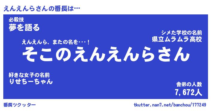 | 肩書あだ名 | 『えんえんら社長令嬢』『えんえんら団長』 |