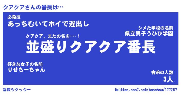| ヒーロー風カッコイイあだ名 | 『スーパークアクア』『魔戒騎士クア』 |