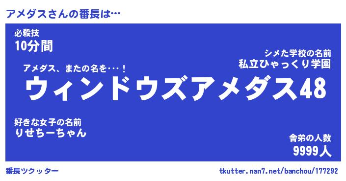 | ヒーロー風カッコイイあだ名 | 『スーパーアメダス』『天弓騎士アメ』 |