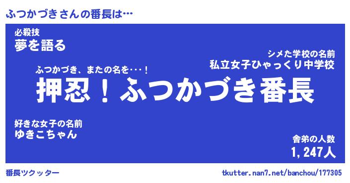 | ヒーロー風カッコイイあだ名 | 『スーパーフツカヅキ』『銀牙騎士フツ』 |