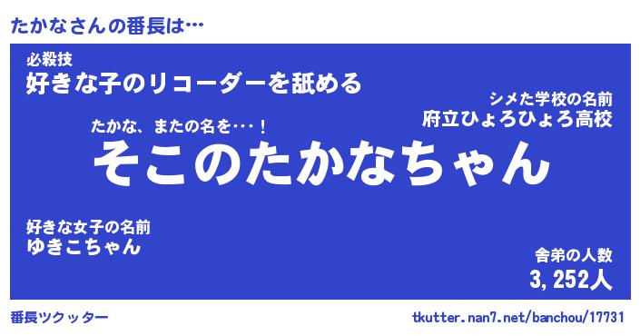 | ヒーロー風カッコイイあだ名 | 『スーパータカナ』『ウルトラたかなマン』 |