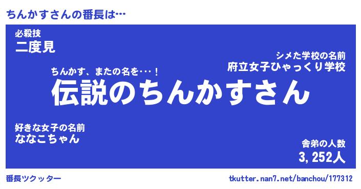 | 伝説のあだ名 | 『伝説の竜騎士ちんかす』 |