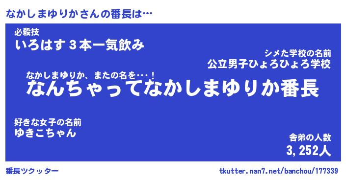 | 伝説のあだ名 | 『伝説のスナイパーなかしまゆりか』 |