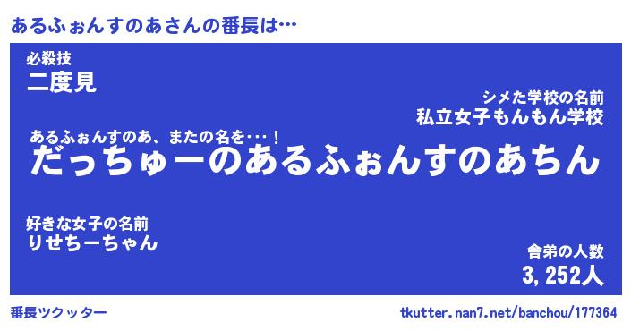| 2回繰り返すあだ名 | 『あるある』『ああるる』『ぬめぬめ』 |