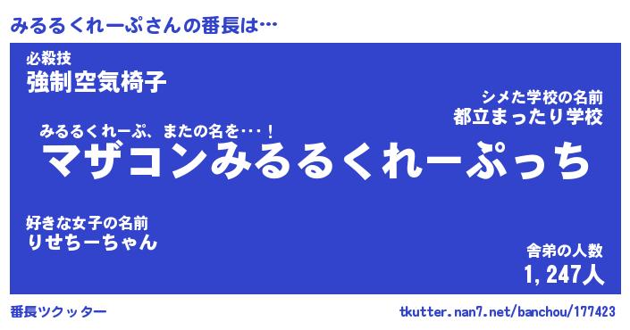 | 欧米人風あだ名 | 『マイケルみるるくれーぷ』 |