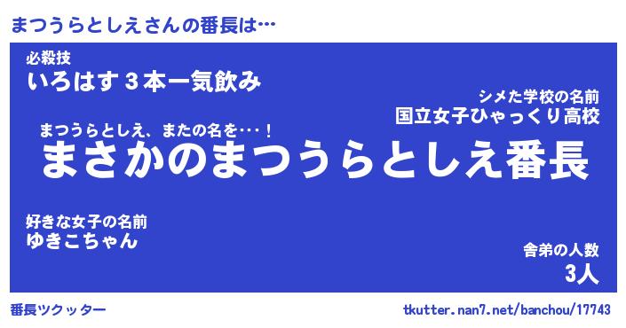 | 伝説のあだ名 | 『伝説のスナイパーまつうらとしえ』 |